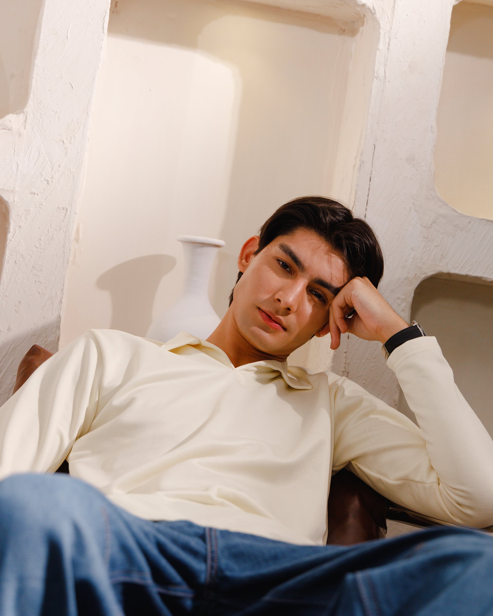 A statement in quiet luxury. The Echelon Long Polo is crafted from a soft-textured knit blend that drapes effortlessly while retaining structure. Designed with a clean open-collar neckline, full sleeves, and a minimal silhouette — it’s the perfect balance between refined tailoring and modern ease.