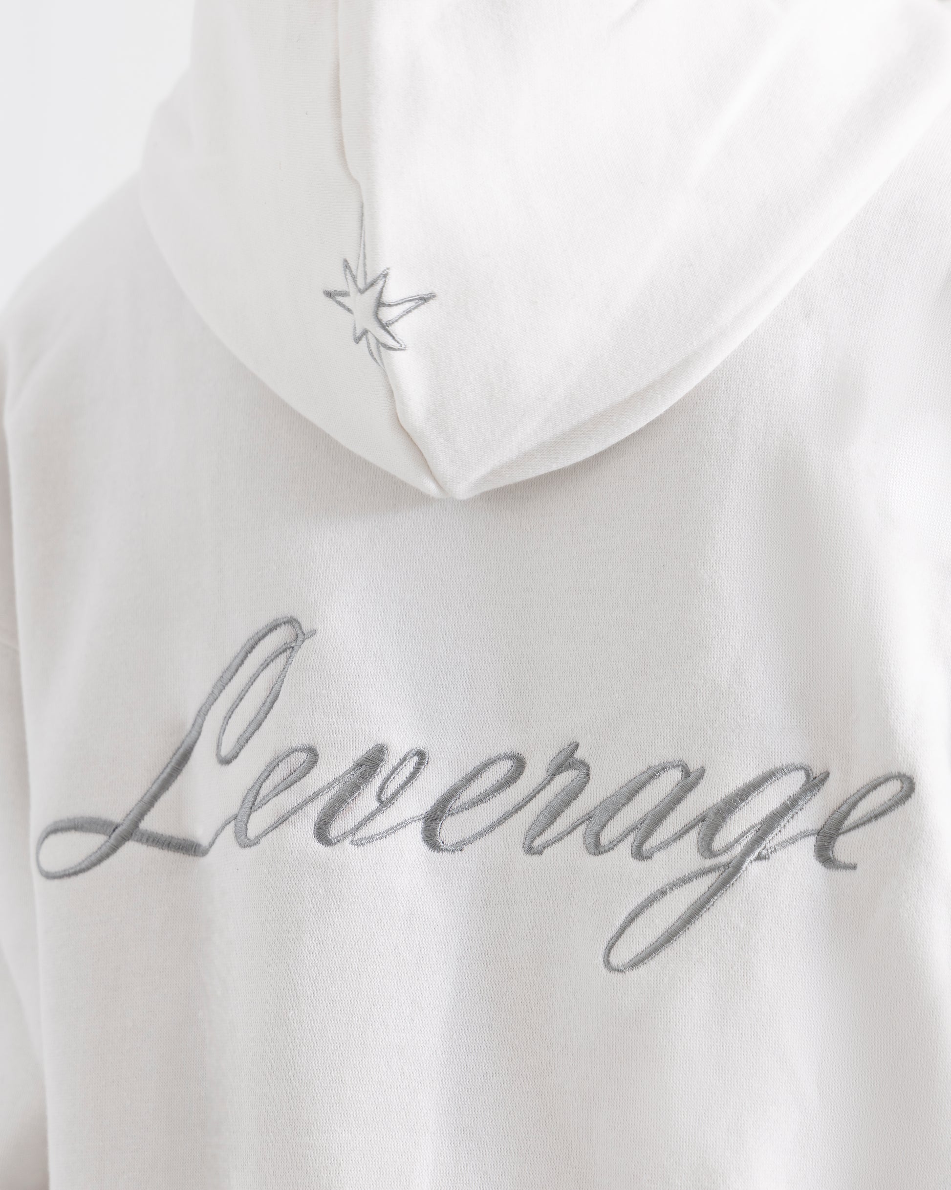 🔘 Design: A crisp white base adorned with subtle yet striking grey embroidery of our signature branding—"LVRG" and "Leverage." Minimalism meets bold identity.