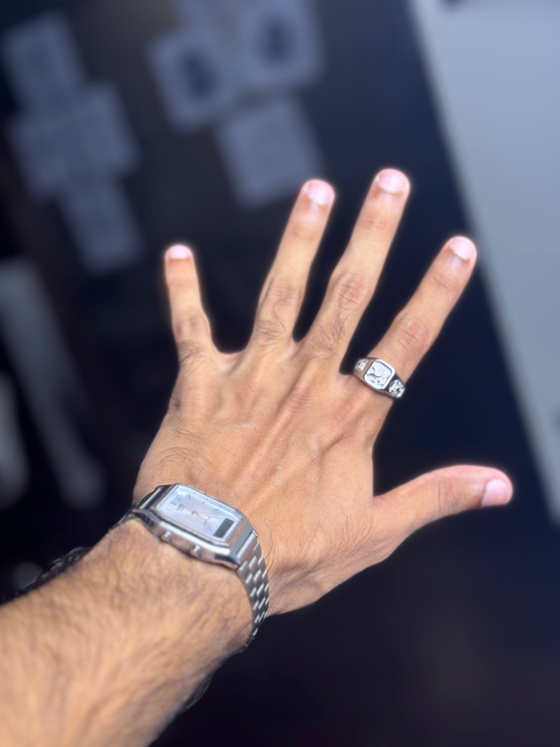 Sculpted with clean, architectural lines, the Skyline Signet draws inspiration from the towering silhouettes of modern cities — bold, grounded, and unshakable. Its matte finish and structured form give it an understated dominance, made for those who carry quiet power.